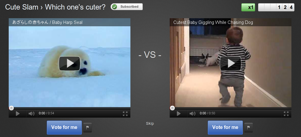 Si eres capaz de predecir cuál elegirá la mayoría ganarás puntos y verás también un ránking de usuarios que se actualizará al final de cada semana. Puedes, por tanto ver los vídeos con más talento, humor, adorables o raros a través de YouTube Slam.