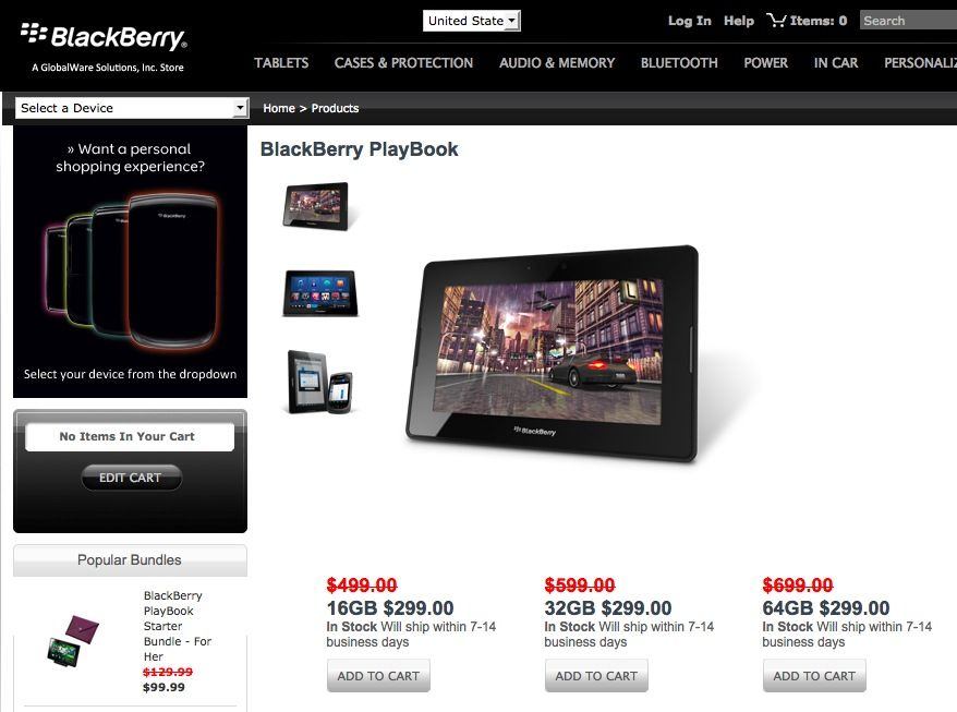 RIM rebaja a 299$ todos sus tablets PlayBook: 16, 32 y 64 Gbytes