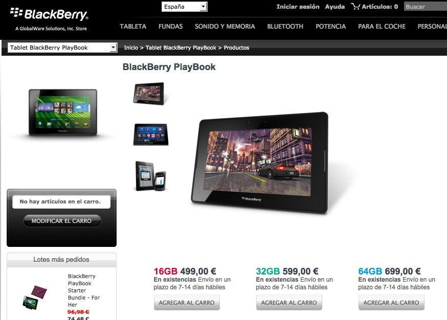 La promoción sólo es válida en Estados Unidos, en la tienda de España siguen mostrando sus precios de 499, 599 y 699 euros, precios elevados y que hacen al tablet de RIM como poco recomendable frente al resto de alternativas del mercado, tanto Apple como Android.