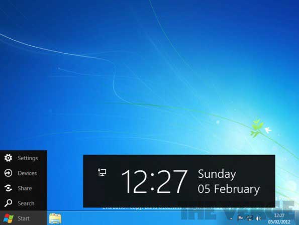 En cuanto a la edición estándar, la build 8220 que correspondería a la versión «Consumer Preview», como ha denominado Microsoft a la beta que debería ser publicada este mismo mes, también se elimina este popular botón potenciando el uso de la super barra, aunque todavía podrá accederse a un modo reducido del menú inicio, accediendo con el ratón en la esquina inferior izquierda.
