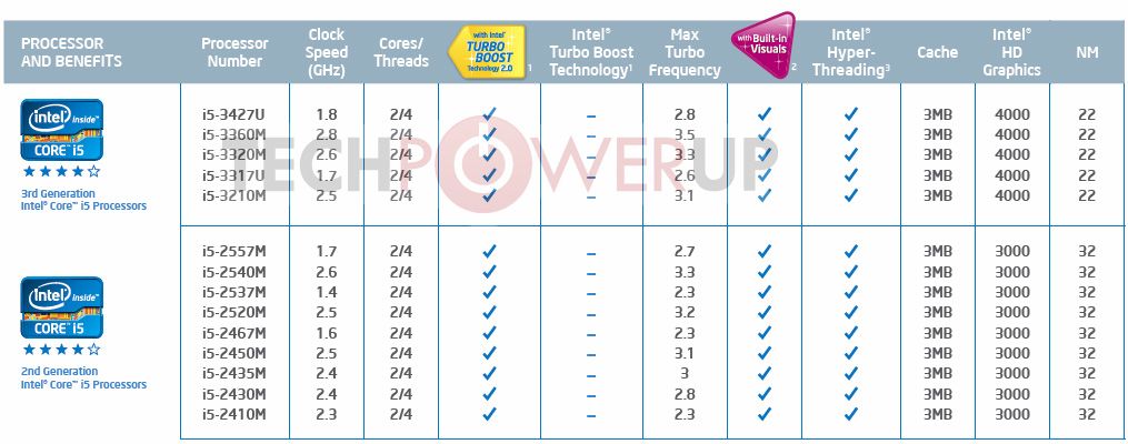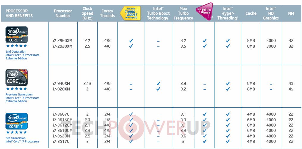Intel ha filtrado listados de modelos y especificaciones de la tercera generación de los procesadores Core para ordenadores de sobremesa y portátiles, conocidos como Ivy Bridge.