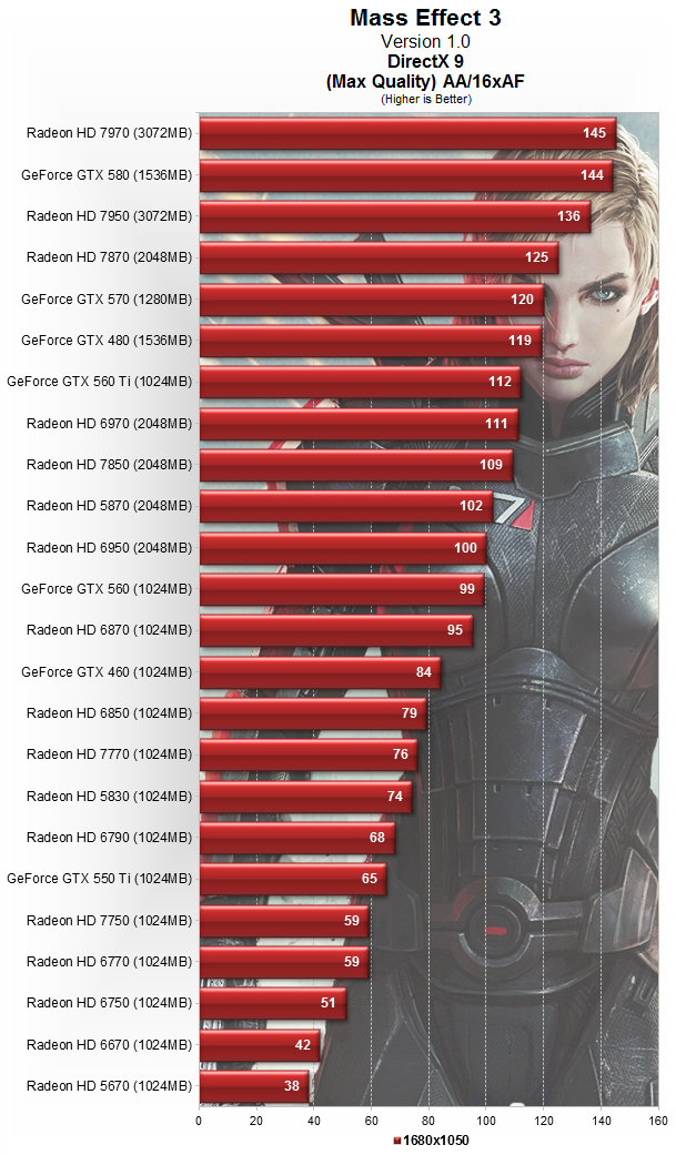 Por ello hemos querido ofrecerte una serie de gráficas en las que reflejamos el rendimiento del juego Mass Effect 3 con distintas configuraciones y también distinta resolución: