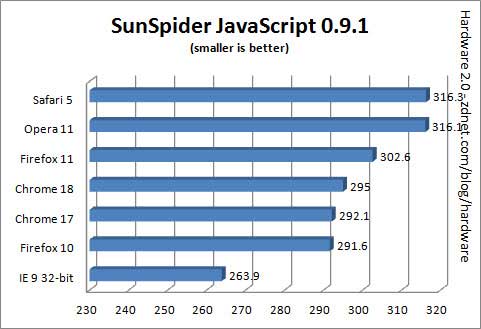 - Internet Explorer 9 de 32 bits sigue venciendo en el SunSpider aunque es el peor en los otros tres benchmark. Sigue siendo el navegador web más mejorado de la actual generación.