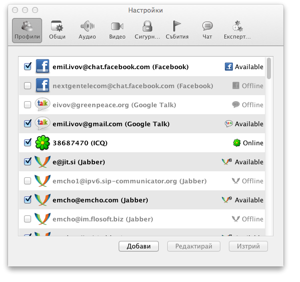 Con Jitsi puedes chatear con tus cuentas de Windows Live (excepto videoconferencia), Yahoo! Messenger, AIM, Bonjour, ICQ y por supuesto Google Talk y Facebook, o cualquier servicio que soporte los protocolos XMPP y SIP, que también permiten realizar llamadas de audio y vídeo, entre otras muchas características.