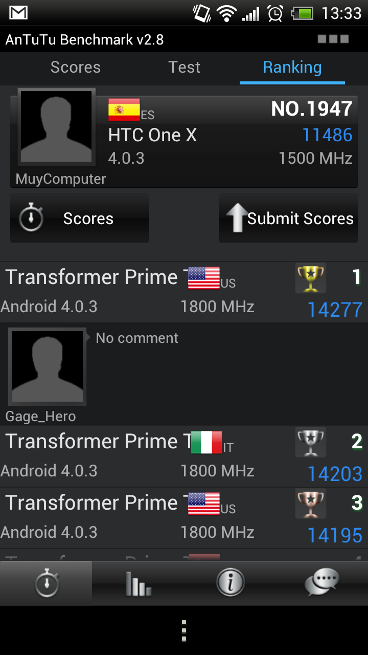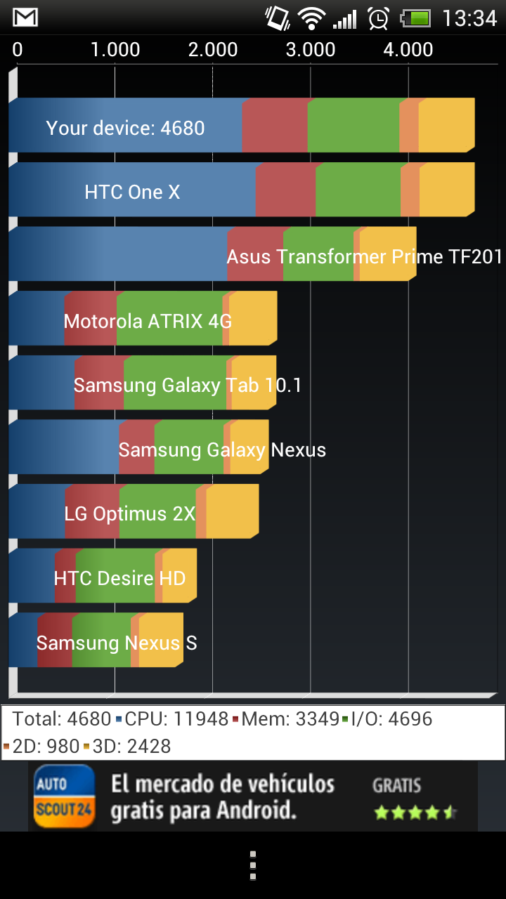 Hablando de rendimiento no hay mucho que rebatir ya que las pruebas sintéticas no dejan lugar a dudas y cuando utilizas el terminal si aún quedase alguna duda se disipa, seguro. Es uno de los terminales más rápidos del mercado a la espera de ver cómo rinde el chip Exynos 4 de Samsung Galaxy S3.