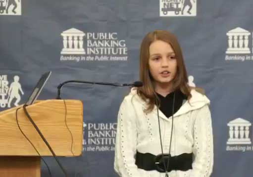 «Resulta dolorosamente obvio, incluso para mí, una niña de 12 años de Canadá, que estamos siendo timados y robados por el sistema bancario y un gobierno cómplice«, explica la joven, resumiendo un punto de vista ampliamente conocido y compartido pero que resulta gratificante oírlo de una joven.