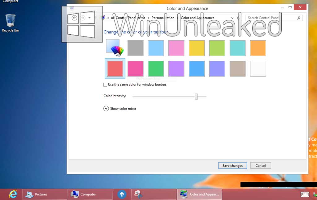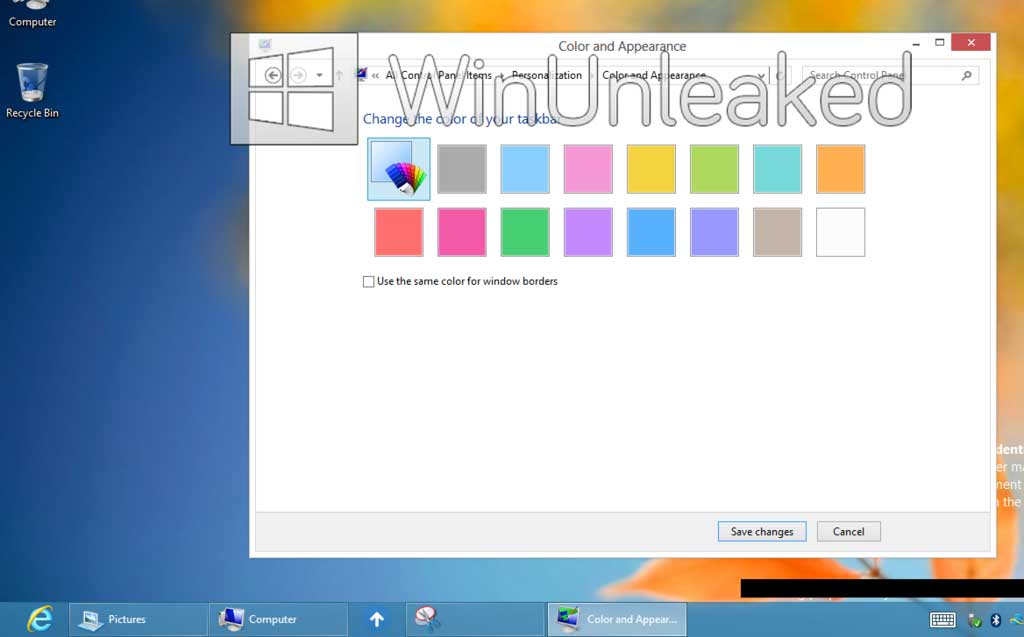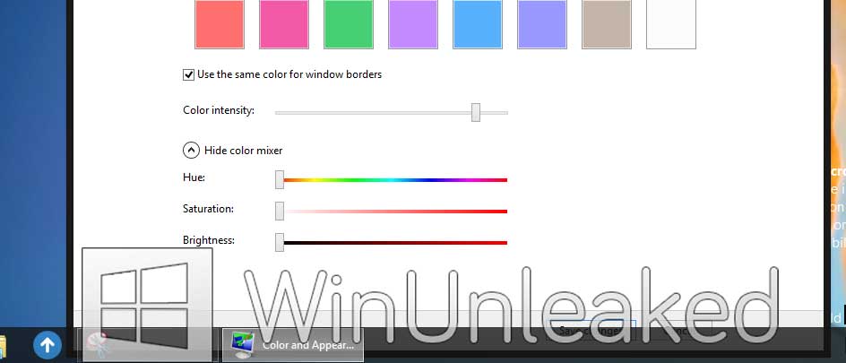 Incluye nuevas opciones y personalización en los colores pudiendo diferenciar los del escritorio, ventanas o barra de tareas. También se anunciaron nuevos iconos y botones para la versión final aunque de momento los que vemos son de la época de Vista.