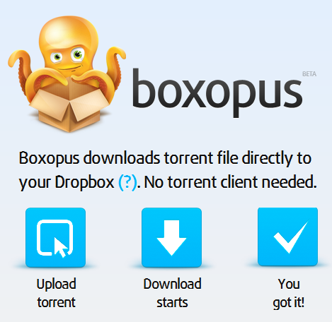 La descarga de los torrents se hace de manera remota y Boxopus copia los archivos a tu cuenta Dropbox. Hay varios portales de descargas Torrent que ya incluyen soporte de Boxopus.