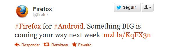 La imagen que ilustra este artículo es, hasta el momento, la única información que tenemos sobre el misterioso anuncio que Mozilla tiene preparado para la semana que viene. Usando la cuenta de Twitter oficial, confirman el lanzamiento de un nuevo Firefox para la plataforma Android.