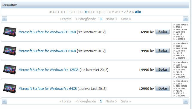 Un retailer sueco ha listado cuatro modelos del nuevo tablet Surface de Microsoft, dos con Windows 8 Pro y otros dos con Windows 8 RT, pero con un denominador común: un precio muy, muy alto.