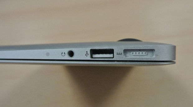 El MBA 11″ (mid 2012) es prácticamente idéntico al que se presentó a finales de 2010, por lo menos en su aspecto externo, es decir, mismo tamaño, misma forma, mismo teclado, misma pantalla… aunque con algunos cambios en sus puertos y en el conector a la corriente, que ahora se denomina MagSafe 2. Respecto al MagSafe 2, decir a aquellos que no lo conozcan que se trata de un conector magnético de CC para evitar que el MacBook Air pueda caerse en caso de que alguien se tropiece con el cable. Es decir, si te enganchas con el cable, al ser magnético, se desprende fácilmente y no arrastra con él al equipo, algo que sí sucede con conectores tipo jack.