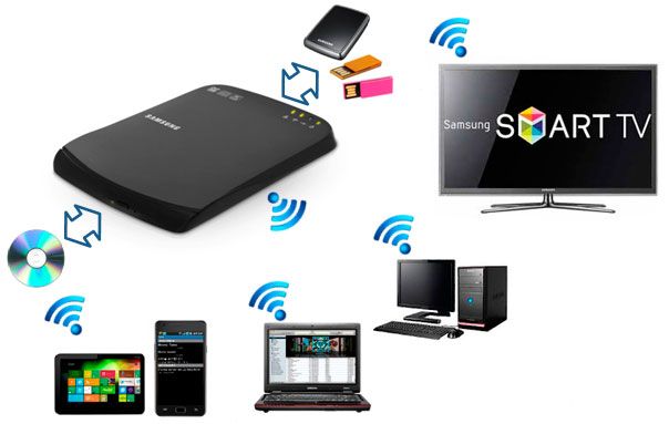A primera vista, el Samsung Optical Smart Hub parece una unidad óptica externa más. De hecho, basta conectarla por USB a cualquier dispositivo compatible para utilizarla como tal, aunque esa sea solo una ínfima parte de sus funciones. La propuesta de Samsung cobra sentido conectada a una red inalámbrica, convirtiéndose en la puerta de entrada para nuestro contenido digital.