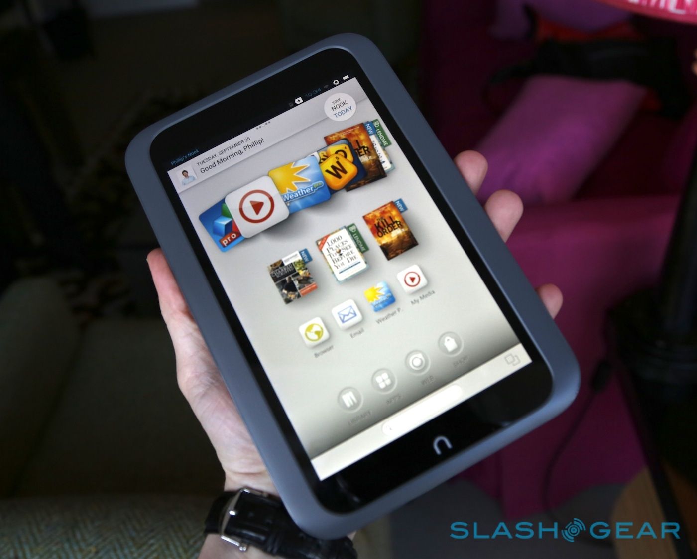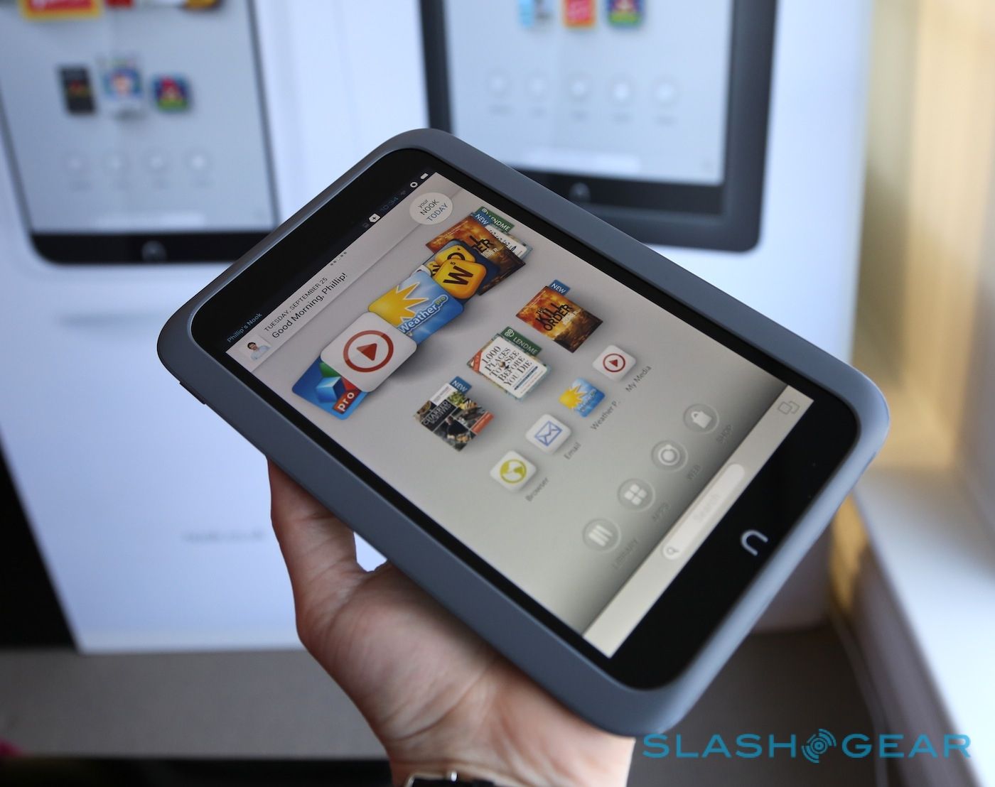 El HD Nook ofrece la mayor resolución de una tableta electrónica de 7 pulgadas que haya en el mercado: 1440 x 900 píxeles. Pesa menos (315 gramos) que el Kindle Fire HD de Amazon con el mismo tamaño y también es más delgado.