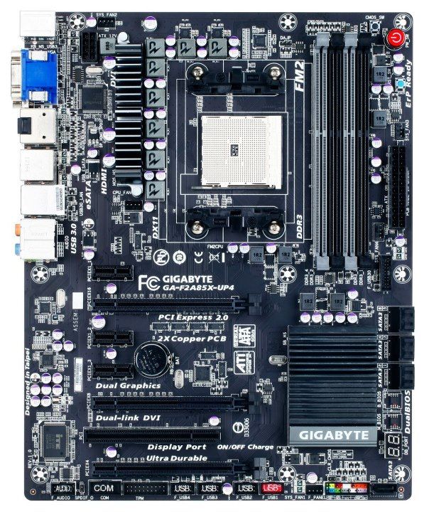 Serán cinco las placas GIGABYTE FM2 que lleguen al mercado en el lanzamiento de las APU Trinity, divididas entre las que utilizan los chipset A85 (GA-F2A85X-UP4) A75 (GA-F2A75-D3H y GA-F2A75M-D3H) o A55 (GA-F2A55M-DS2 y GA-F2A55M-DS2) que AMD ha dispuesto para esta plataforma de procesamiento que, como sabes, incorpora CPU, GPU y controladora de memoria en la misma die.