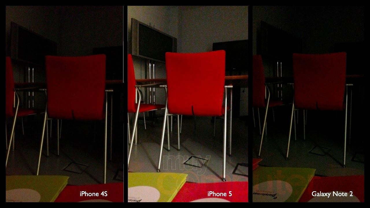 Aquí ya empieza a verse cómo iPhone 5 capta más luz que su predecesor y Galaxy Note 2, aunque tendremos imágenes que dejarán patente este hecho de manera más contundente.