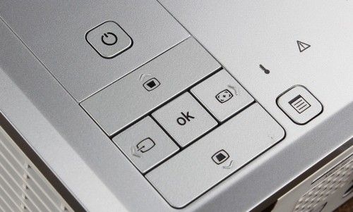 Poner en marcha el MP410 es sencillo, dispone de un teclado en la parte superior que permite configurar el proyector y seleccionar la entrada. El enfoque se realiza de forma manual con la anilla tradicional. No dispone de corrección de geometría pero sí de regulación de altura.