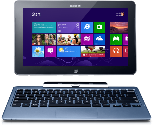 Ativ Smart PC 500T. Una tableta electrónica con pantalla de 11,6 pulgadas, uno de los nuevos procesadores Atom Clover Trail, 2 Gbytes de RAM y 64 Gbytes de almacenamiento interno. 650 dólares es el precio base y 750 dólares incluyendo una estación de acoplamiento para convertirlo en ultraportátil.