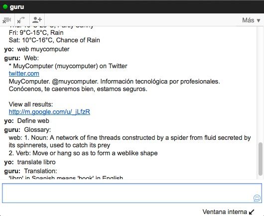 Para poder utilizarlo sólo tienes que añadir en Google Talk al usuario guru@googlelabs.com y podrás pedirle información de la forma: