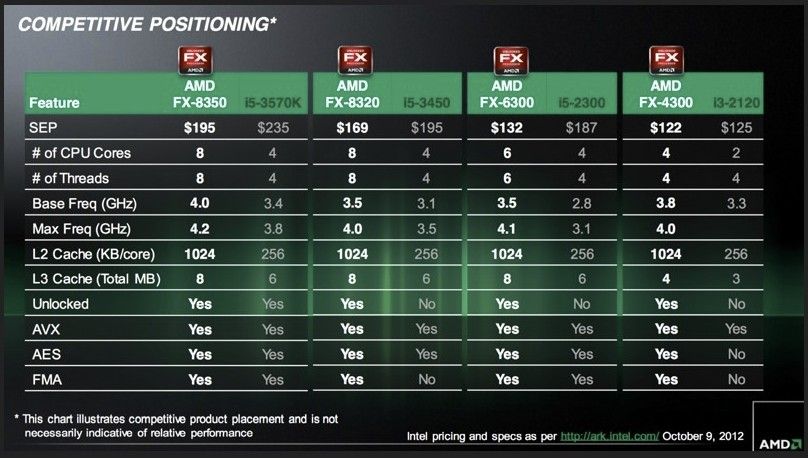 En principio, la gama FX Vishera contempla cuatro modelos FX-8350, FX-8320, FX-6300 y FX-4300 con 8, 6 y 4 núcleos de procesamiento nativo. Sus precios son los que te habíamos anunciado y tan contenidos como para lo que ofrecen estos micros, con el modelo más potente por debajo de los 200 dólares.