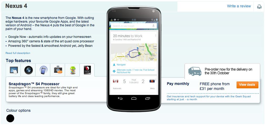 El retailer británico Carphone Warehouse ha comenzado a ofrecer la reserva del próximo teléfono inteligente de Google, el Nexus 4 fabricado por LG.
