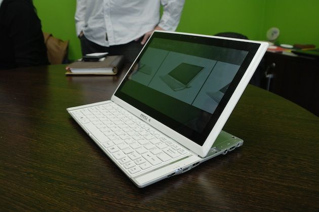 Este es el caso de MSI Slider S20, producto que la compañía mostró en el pasado Computex 2012, y que hemos podido toquetear esta mañana en nuestras oficinas. Tina Chang, Marketing Manager Product Marcom NB Marketing Dept. de la compañía, nos ha mostrado un sample del que será uno de los tablets convertibles estrella de estas Navidades.