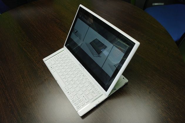 No se trata de un portátil propiamente dicho ni tampoco de un tablet. Es un equipo que trabaja sobre un Core i5, ofrece 9 horas de autonomía y tiene una pantalla capacitiva de 11,6 pulgadas con soporte de hasta diez puntos táctiles. Dicha pantalla se desliza y deja ver el teclado QWERTY que esconde bajo sí abatiéndose posteriormente y quedando en un formato muy cómodo para trabajar sobre Windows 8.