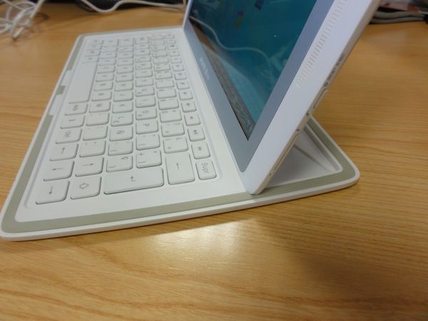 El tablet tiene 10,1 pulgadas de diagonal y el teclado está acorde a ese tamaño, es decir, hablamos de un teclado tipo netbook, con teclas de tamaño más reducido que en un portátil tradicional, aunque su diseño chiclet facilita en cierta manera su uso. Integra las teclas más comunes para Android como son Home, lista de aplicaciones abiertas, anterior, búsqueda, notificaciones y controles de brillo, conectividad y volumen.