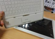 A la hora de usarlo, separamos el tablet del teclado y lo colocamos en su lugar y se sujeta vía un apoyo para la parte trasera de plástico, quizá la parte más débil del conjunto.