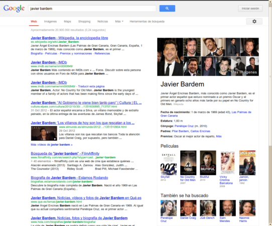 Si has navegado los últimos meses por Internet habrás visto cierta información en Google a la derecha de la lista de resultados relacionada con la misma, datos que completan la información biográfica de artistas y personajes, fechas, personajes y eventos relacionados etc.