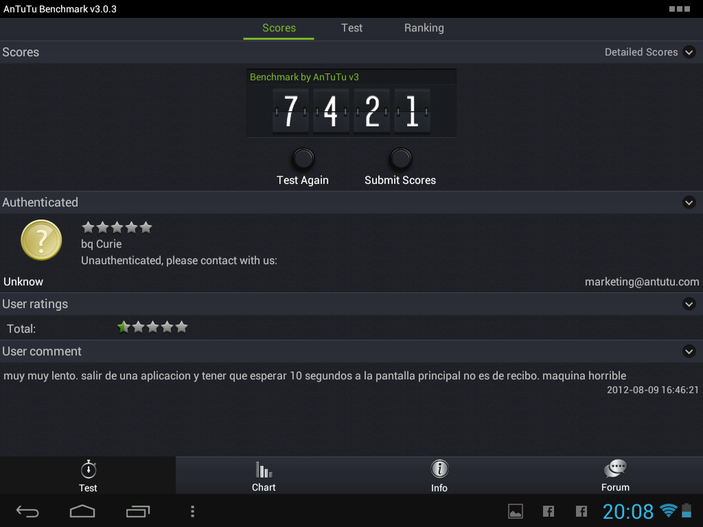 El tablet rinde de manera destacada con un procesador de doble núcleo que permite ofrecer al usuario una experiencia completamente fluida. Os dejamos los resultados de las populares pruebas de rendimiento: Antutu, Vellamo y Taiji BenchMark: