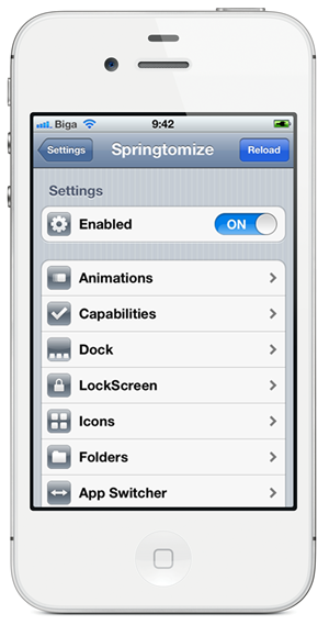 - Springtomize 2 – es la app definitiva para personalizar tu dispositivo iOS, puedes modificar la barra de estado, los iconos, el texto y cualquier cosa.