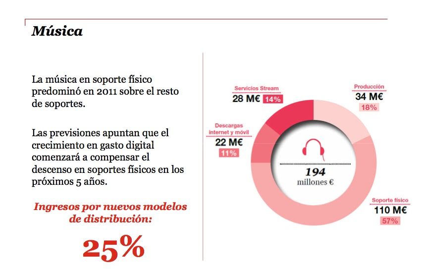 La música es el nicho que más ha sufrido la revolución on-line. Aún así más del 50% de las ventas se sigue generando por la venta de soporte físicos.