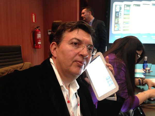 Eso sí, como ves en la imagen de nuestro compañero Fernando, hablar por teléfono con un ‘móvil’ de 8 pulgadas será toda una experiencia…. y un espectáculo para los que te vean sujetar el phablet de esta guisa. Parece que se impone el uso del ‘pinganillo’.