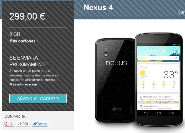 No pondríamos la manos en el fuego porque han sido varias las ocasiones en las que el Nexus 4 ha estado a la venta unas horas para quedarse sin stock, pero todo apunta a que esta vez es la definitiva y desde este fin de semana está disponible para reservar en las tiendas Google Play.