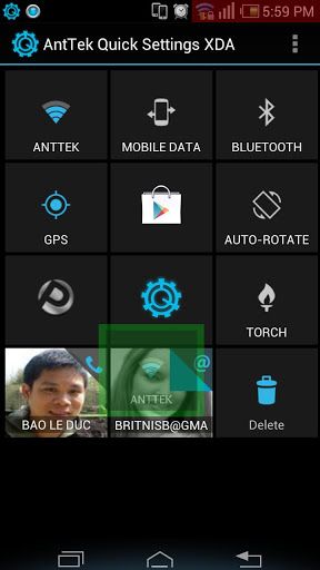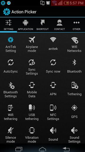 - Toggle Settings: WiFi, datos móviles, bluetooth, cierre estela, rotación, modo de vuelo, WiFi y USB Tethering-, GPS, etc
