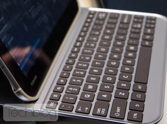 El tablet de Toshiba dispone de un lector de tarjetas micro SD, salida mini HDMI y altavoces estéreo. También un dock con teclado aunque no se conoce el tipo de estación de acoplamiento que incluye.