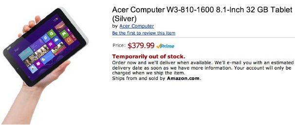 Amazon lista el Acer W3 confirmando los tablets Windows 8 baratos