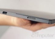 Tras la primera y positiva impresión de la caja sujetamos en nuestras manos el tablet y enseguida notamos otro de los factores diferenciales del producto sobre el que merece la pena detenerse. El exterior del dispositivo presenta una superficie mate con un tacto que una alta calidad de materiales y ensamblaje. El material elegido, llamado VaporMg, proporciona una rigidez y una sensación de robustez muy alta. También los elementos plásticos son de alta calidad, como la aleta que se abre en la parte posterior que hace las veces de soporte del dispositivo.