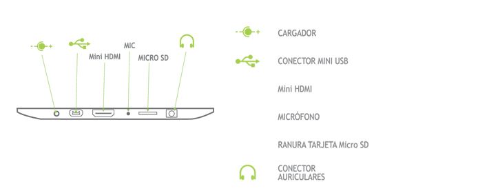 En cuanto a la estética, no se han lucido mucho. La parte trasera es de plástico blanco y la delantera negra. Sin duda uno de los mejores puntos a favor de este dispositivo, son sus conexiones. La tableta cuenta con un conector miniHDMI, miniUSB y tarjeta SD. Además de los sempiternos auriculares y el del cargador. Con lo que tenemos una verdadera tableta versátil que nos puede servir tanto para leer un libro, como jugar, como visualizar vídeos desde la tableta o la televisión. Todo ello con una calidad más que respetable. Eso si, tantas conexiones, aumentan el grosor del dispositivo. Un detalle que hay que agradecerle a los de la casa del libro es el de los auriculares que incluyen en la caja.