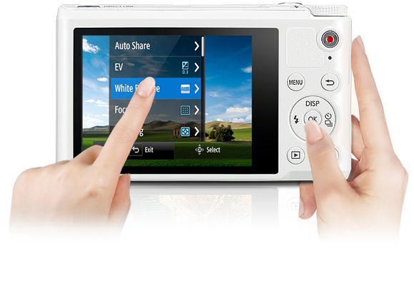 La cámara Samsung WB250F Smart Camera dispone de unos menús muy sencillos de utilizar e incluso un modo Auto que funcionará bien en la mayoría de casos. De todas maneras también tenemos que comentar que hay una guía en pantalla constante opción tras opción que nos ayuda a elegir la mejor configuración de la cámara. La navegación es sencilla gracias al sistema híbrido de control, el tradicional de botones, o bien mediante su pantalla táctil.