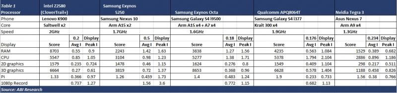 La firma ABI Research ha realizado una interesante comparativa donde miden el rendimiento del nuevo SoC Atom Z2580 de Intel, dirigido al mercado smartphone, frente a las alternativas de Samsung, NVIDIA y Qualcomm utilizadas en los Galaxy S4, la tablet Nexus 10 y la ASUS Nexus 7.