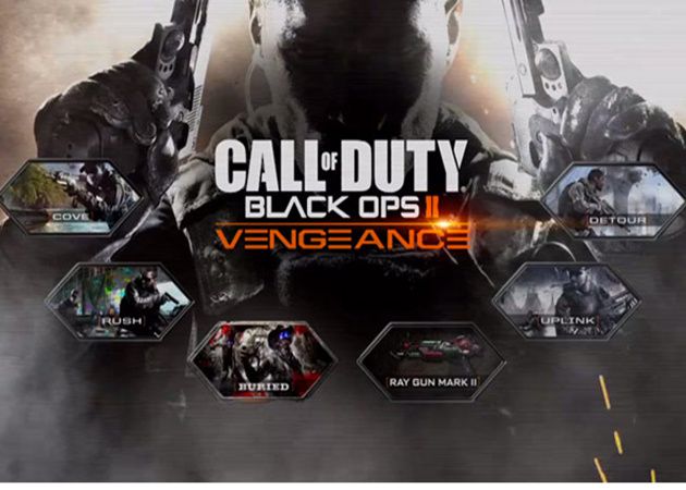 Este nuevo DLC para Call of Duty: Black Ops II leva por nombre ‘Vengeance’ y llega tras ‘Revolution’ y ‘Uprising’. Incluye cuatro mapas multijugador «Cove», «Uplink», «Rush» y «Detour», y el mapa de zombies «Buried» que incorpora la «Raygun Mark II» a todos los mapas zombies anteriores y en el que tendremos que disparar a todo bicho viviente en una antigua ciudad minera.