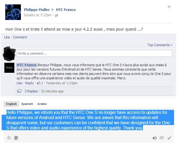 Por desgracia, y en un movimiento a todas luces poco afortunado, la división francesa del fabricante taiwanés ha confirmado en Facebook que el HTC One S no recibirá la actualización a Android 4.2, lo que deja a sus usuarios con Android 4.1.2 como la versión oficial más actual disponible.