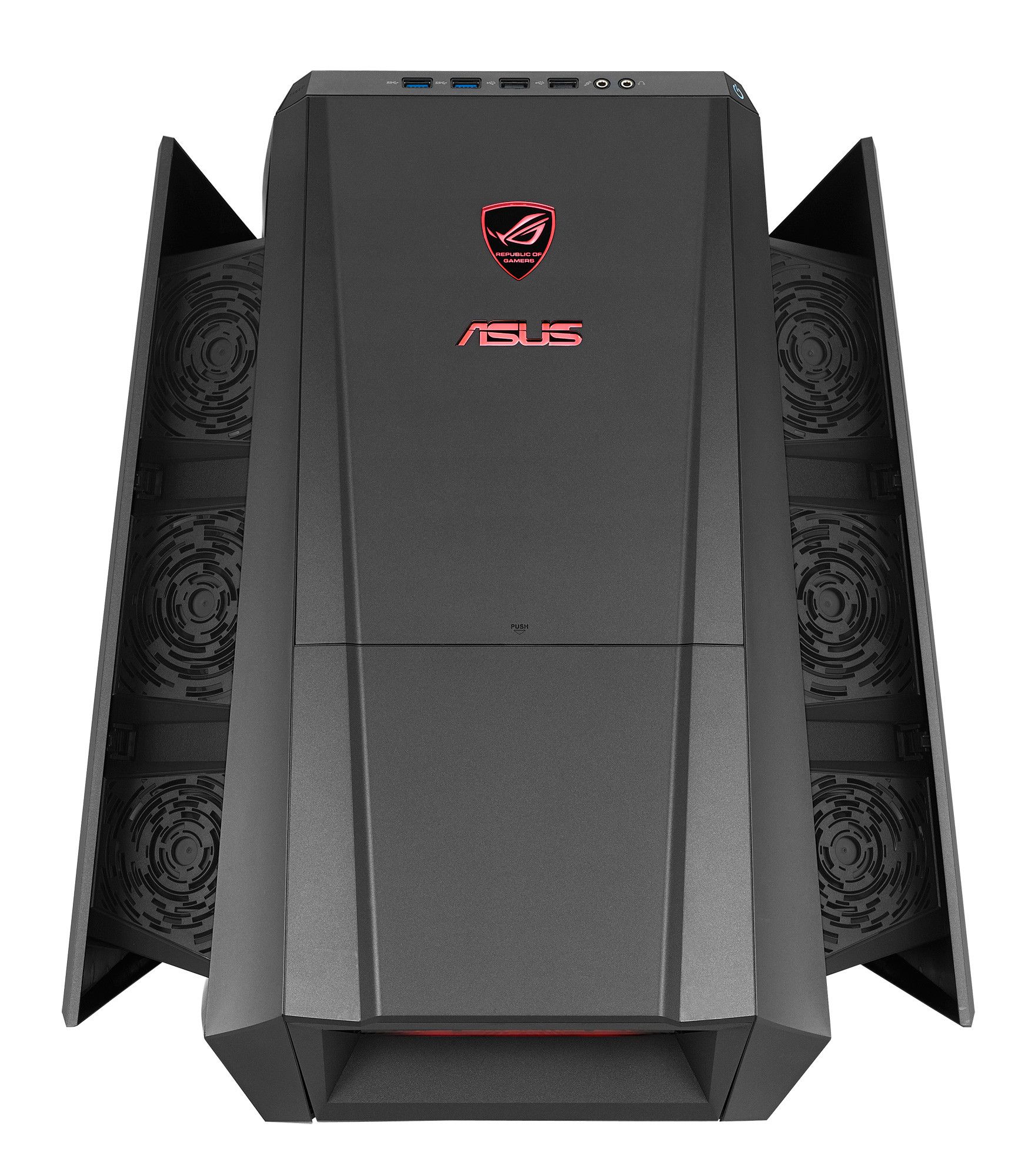 [expand]Taipei, Taiwán (31 July, 2013) – ASUS today Announced the Tytan G70 Gaming Desktop PC with the latest 4th generation Intel ® Core ™ processor and one-click, no reboot-required, all-core processor overclocking. The Tytan G70 also features NVIDIA ® GeForce ® GTX780 graphics that supports four displays for fully Immersive gaming, a sophisticated multi-vented case design for efficient cooling, built-in wireless battery recharging for mobile devices, and SonicMaster audio.