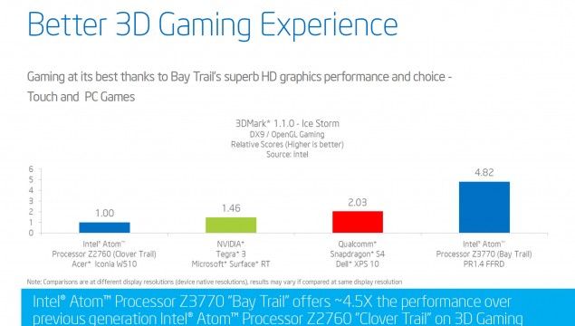 De cualquier modo y según el fabricante, los Intel Atom Z3000 serán capaces de batir a los SoC más potentes con diseño ARM, el Snapdragon 800 de Qualcomm y el Tegra 4 de NVIDIA, y tanto en rendimiento de proceso como en gráfico.