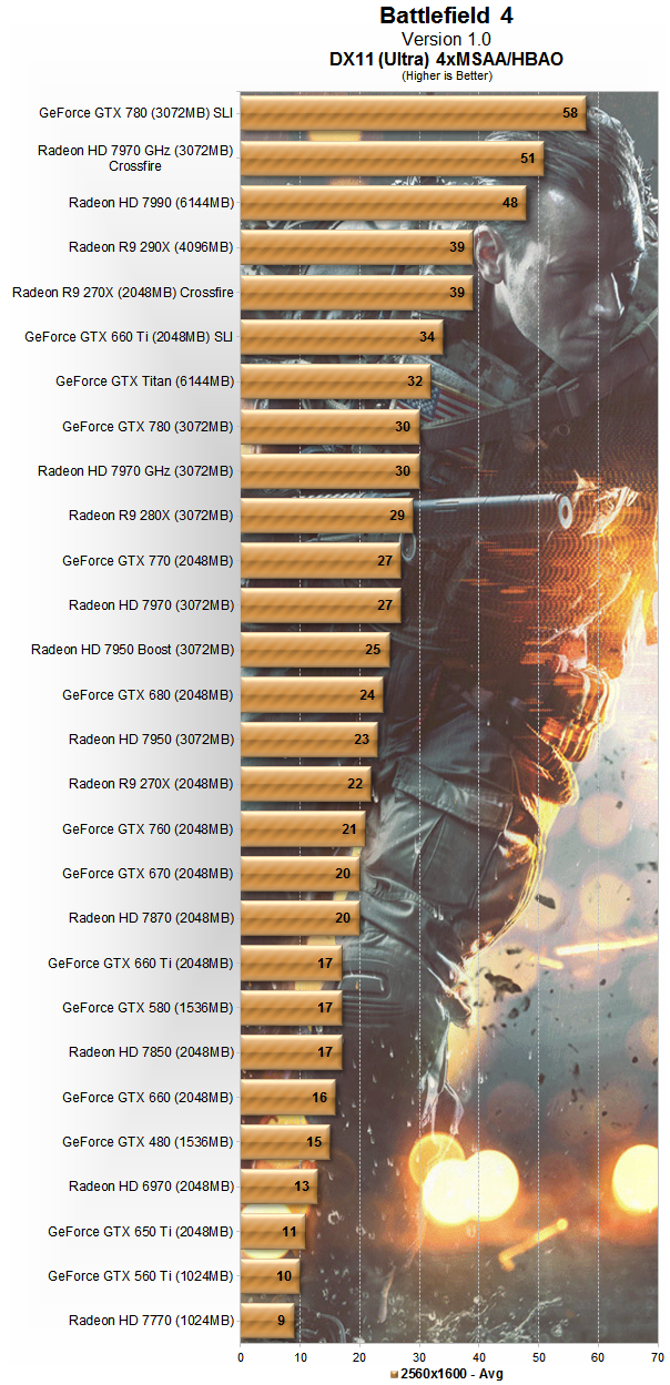 Pero las sorpresas no acaban aquí, ya que al subir la resolución hasta los 2.560 x 1.600 píxeles vemos que la HD 7970 GHz Edition ofrece el mismo resultado que una GTX 780, de nuevo otra gran sorpresa que pone de relieve algo que os he comentado en muchas ocasiones, la optimización hace maravillas.
