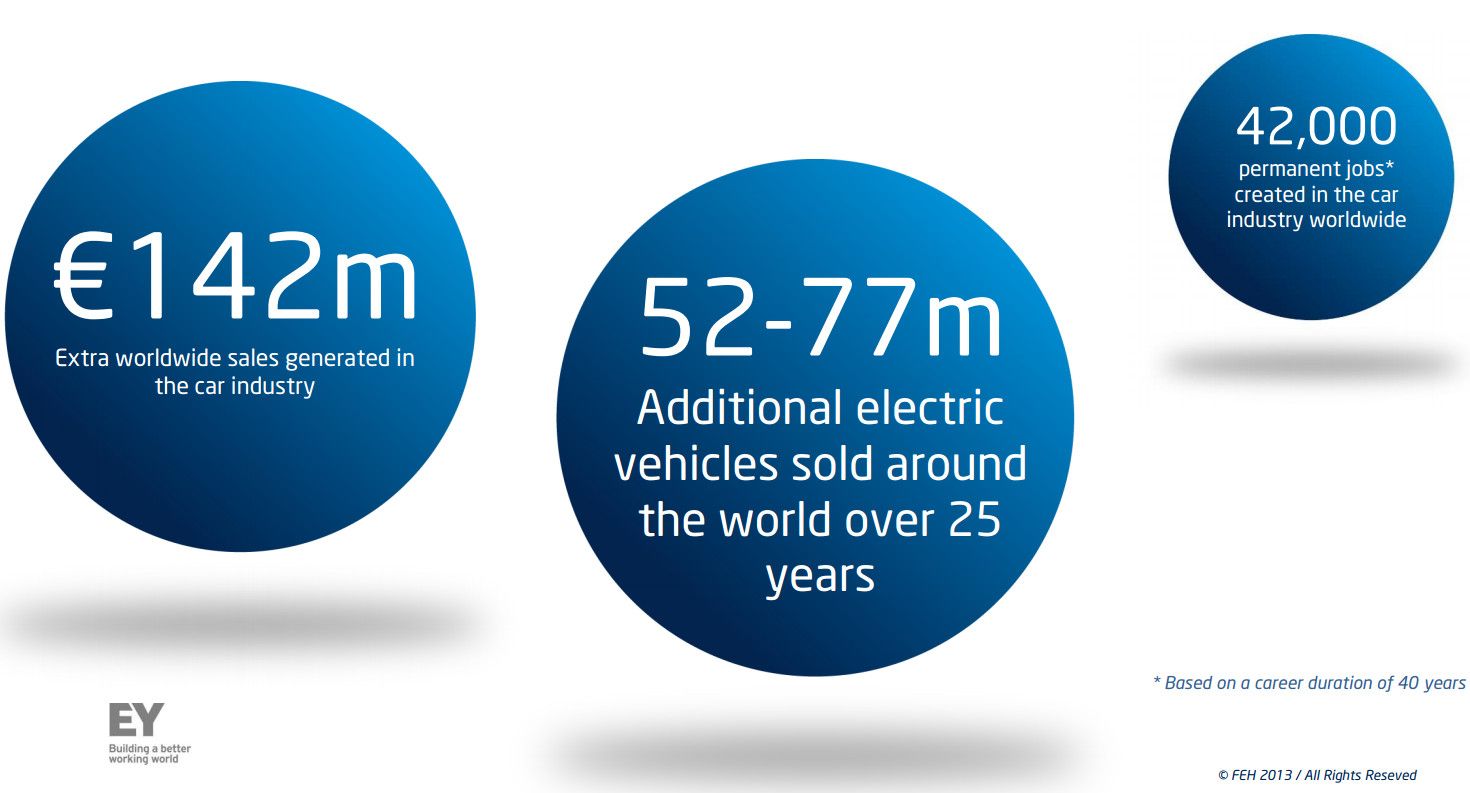 Para el coche eléctrico, se espera que esta competición impulse ventas en 77 millones de unidades en los próximos 25 años y con un impacto económico y social importante, 42.000 puestos de trabajo y ahorro de 25.000 millones de euros en costes sanitarios, reducción de la contaminación en las ciudades y una mejora significativa en la calidad de vida.