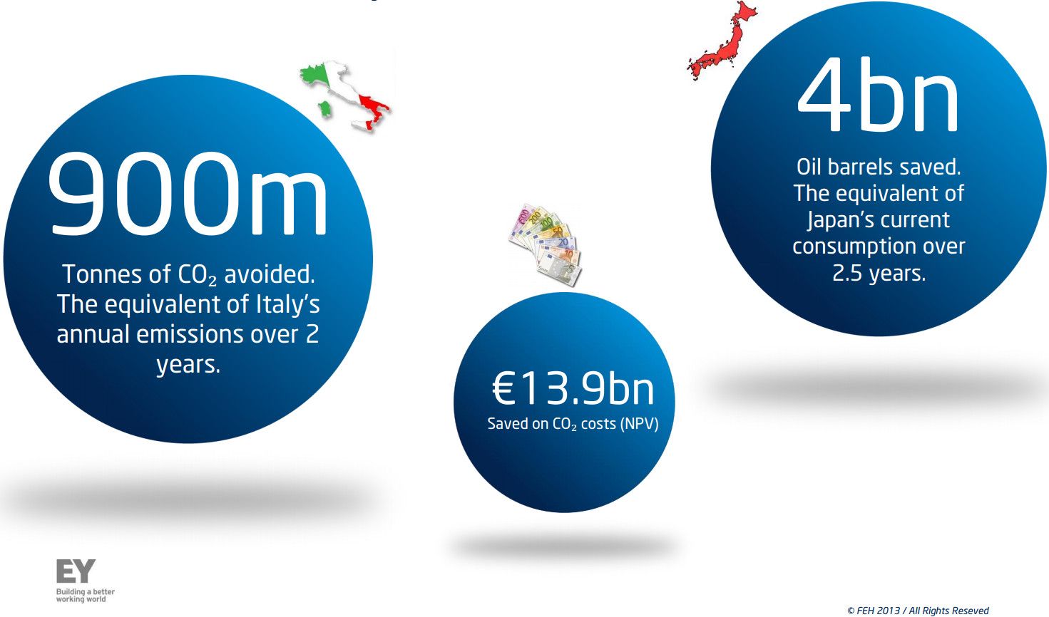 Contaminación reducida muy necesaria para nuestro maltrecho planeta y que se calcula en ahorro de cuatro mil millones de barriles de petróleo y de 900 toneladas de CO2 menos emitidas a la atmósfera, comparable con todas las emisiones de un país como Italia en dos años.