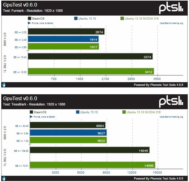 La liberación del nuevo sistema operativo de Valve ha permitido a la gente de Phoronix llevar a cambo una interesante comparativa, donde miden el rendimiento de Steam OS y Ubuntu 13.10 con tarjetas gráficas GTX 680 y GTX 780 Ti de NVIDIA.