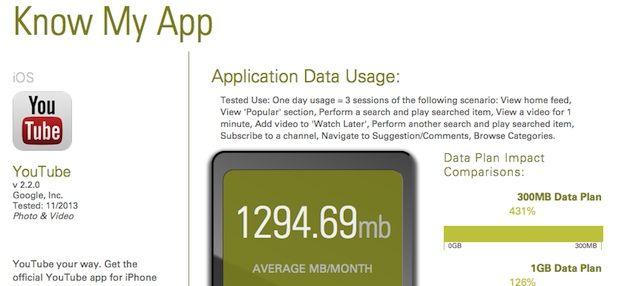 Lo único que tenemos que hacer es entrar en la web de Know My App y seleccionar una aplicación determinada para Android o iOS. Así, por ejemplo, veremos que de media YouTube consumiría unos 1.300 Mbytes utilizándola tres veces al día bajo las siguientes circunstancias: consultar nuestro feed de inicio y la sección de vídeos populares, buscar y reproducir dos elementos, visionar otro vídeo durante un minuto, añadirlo a la lista de «ver más tarde», suscribirse a un canal, ver las diversas categorías y navegar por las recomendaciones y los comentarios.